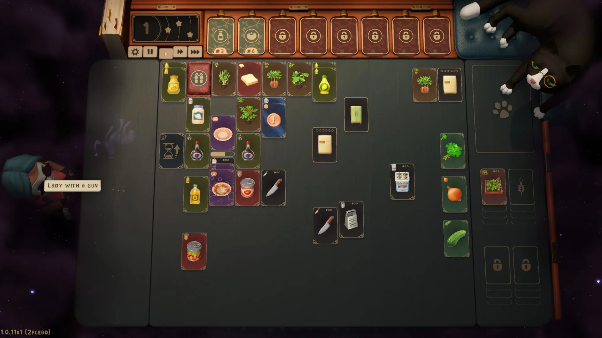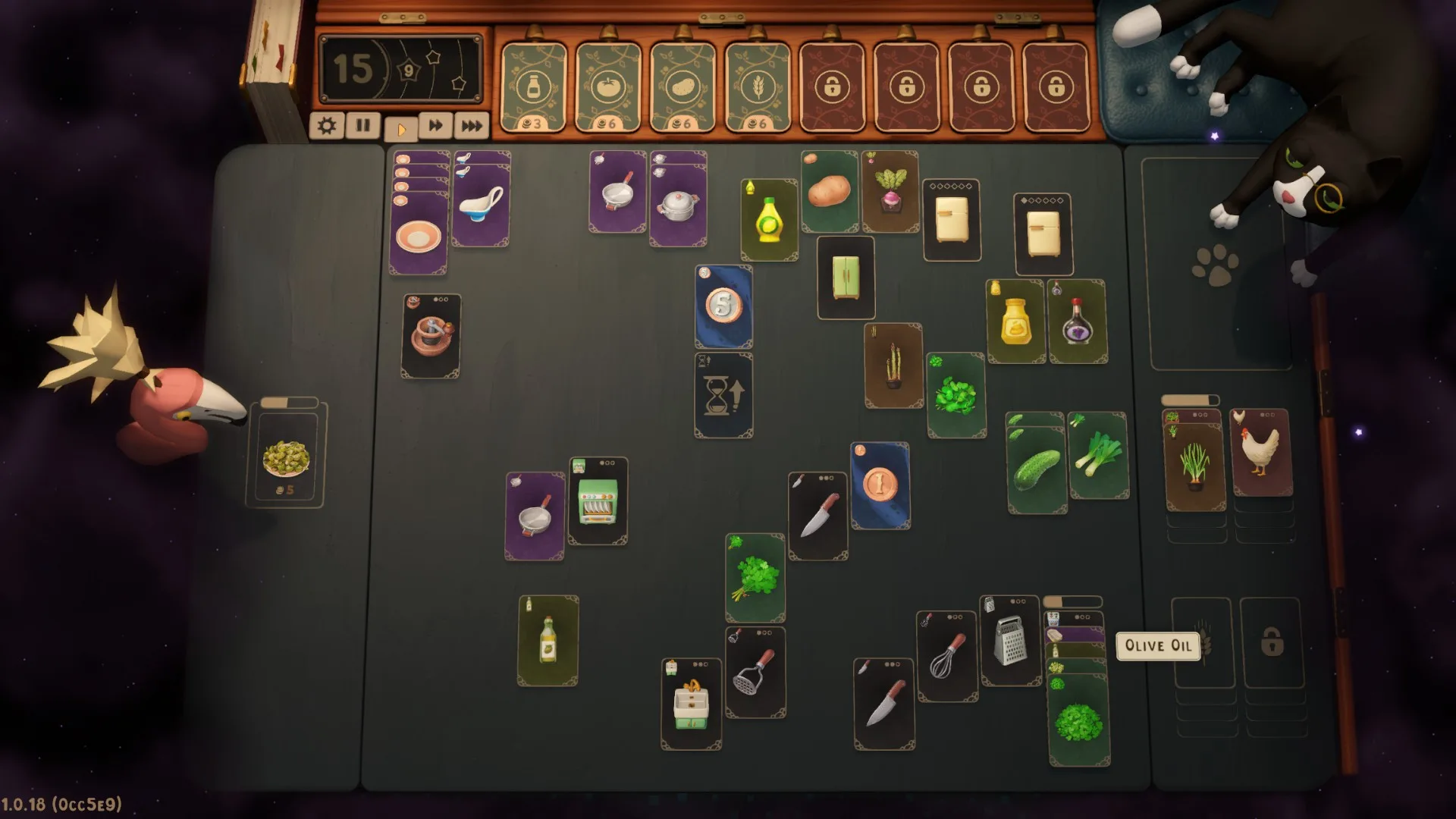 Úspech v hre závisí primárne od troch atribútov: prípravy, šťastia a poriadku. Na začiatku levelu dostanete od svojho šéfa (čierneho kocúra) základný balíček, ktorý obsahuje niekoľko základných surovín. Ďalšie si však budete musieť postupne zabezpečiť sami nakupovaním kartových balíčkov označených rôznymi symbolmi. Tie vám napovedia, či nakupujete omáčky, mäso, zeleninu, koreniny a podobne. Súčasne budete potrebovať aj trochu šťastia, keďže každý balíček obsahuje len tri karty a vôbec nemusí padnúť tá, ktorú práve potrebujete. Taktiež je dobré udržiavať na hracej ploche aspoň základný poriadok, keďže si tým ušetríte veľa času a nebudete musieť hľadať karty krížom-krážom.
