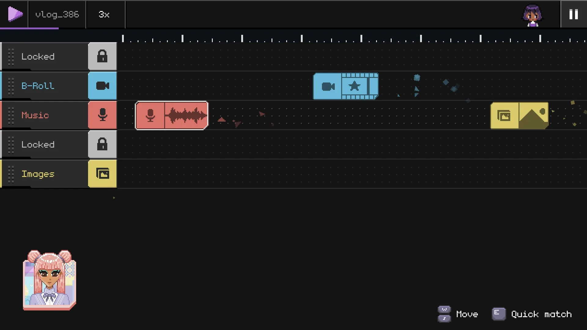 Pracovná náplň v podobe editovania videí je spracovaná ako minihra, kde presúvate farebné obdĺžniky na správne miesto. S každým úspechom sa tempo zrýchľuje, chyby ho naopak spomaľujú. Ide o jednoduchý, no zábavný systém, ktorý si môžete uľahčiť aj špeciálnymi schopnosťami.