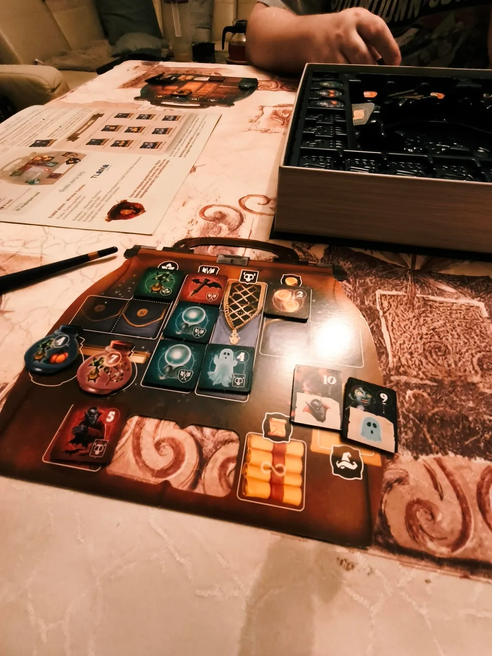 V krátkosti sme si zhrnuli herný obsah, tak sa poďme mrknúť na samotnú hrateľnosť. Incantibus je určený pre 2 až 4 hráčov a s tým je nutné od začiatku počítať. Ide o kompetitívnu hru, ktorej víťaz sa stáva najväčším mágom. Vašou úlohou je tak počas prieskumu tajomnej veže získať čo najvyšší počet magických bodov. Tie môžete získať z väčšiny herných žetónov, no najviac za porazenie zlých čarodejov. Herné pravidlá sú pomerne krátke, no vcelku zrozumiteľne napísané, takže by ste sa nemali stratiť v zbytočných úvahách, ako niektoré herné mechanizmy fungujú a či ste ich správne pochopili. Príprava hry vám zaberie len chvíľku, aj keď musím priznať, že náhodné vyťahovanie jednotlivých žetónov je trošičku otravné. Karty si zamiešate, no zamiešať kartónové žetóny je už trošku oriešok, hlavne keď si ich nechcete po niekoľkých partiách znehodnotiť. Tie sú v závislosti od počtu hráčov aj dosť rýchle, takže ak sa rozhodnete si zahrať viac partií za sebou, tak sa vám asi veľmi nebude chcieť odkladať jednotlivé žetóny do insertu, ale radšej si ich necháte na kôpke vedľa „knihy“.