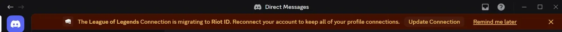 Ak už máš svoj Riot účet prepojený s Discordom, po novom sa ti zobrazí notifikácia o prechode na nový systém Riot ID. Stačí kliknúť na tlačidlo na aktualizáciu prepojenia a automaticky sa ti otvorí Riot stránka v prehliadači. Tam už len potvrdíš pokračovanie a máš hotovo.