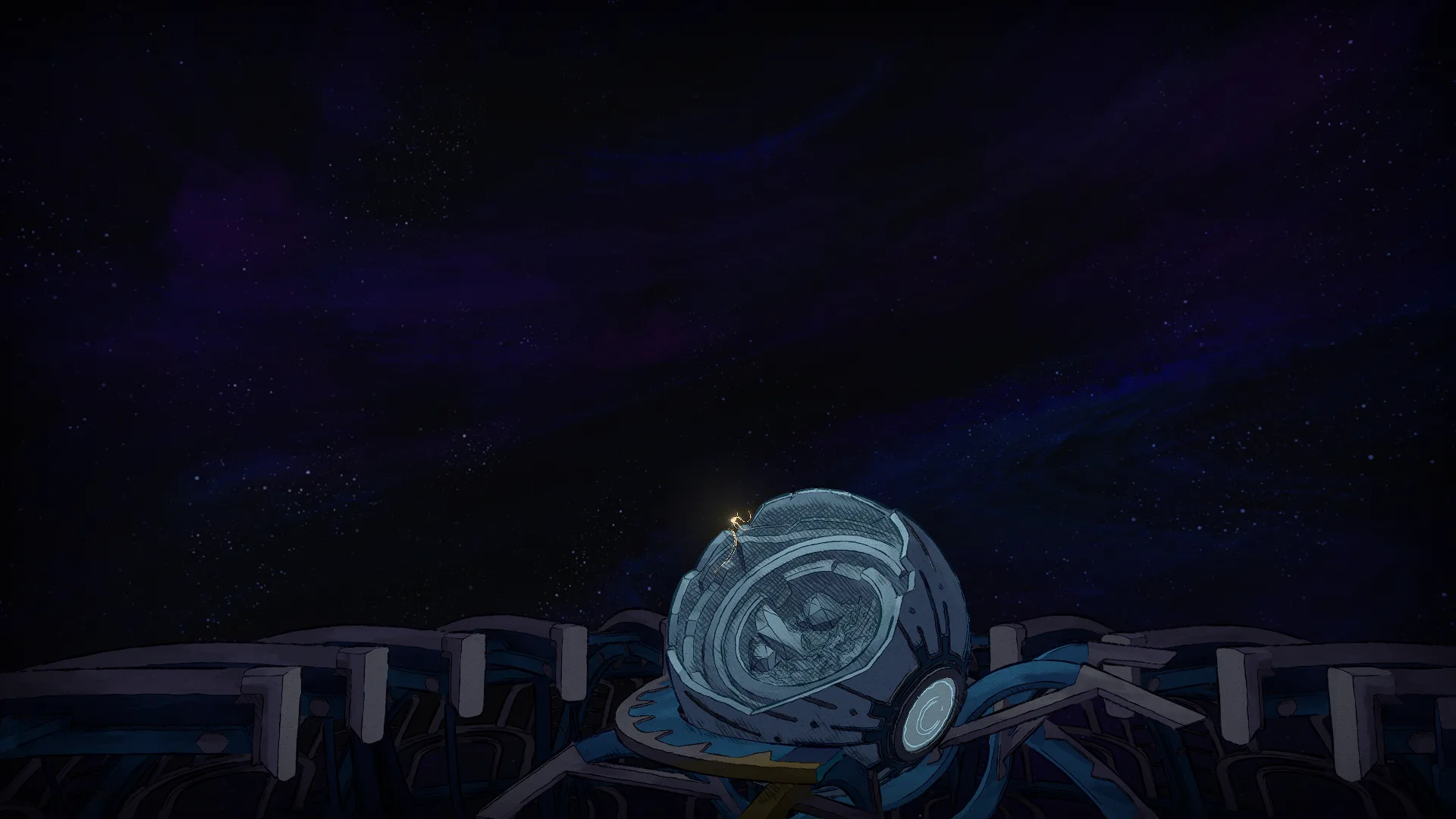 Prvá vec, ktorá mi počas hrania MIO: Memories in Orbit udrela do očí, bola jej nádherný umelecký štýl. Hra má veľmi sympatický vizuál, ktorý miestami pôsobí ako obrázková sci-fi rozprávka. Jednotlivé pozadia vyzerajú ako keby boli maľované vodovými farbami, no súčasne majú aj jemné kontúry, ktoré pôsobia ako spracované ceruzkou. Každá oblasť pôsobí veľmi distinktívne, viete ich od seba veľmi dobre odlíšiť a kým v Metropolise cítiť silnú prítomnosť svetla, pri Promenáde sa ponoríte do nepríjemného temného močiara.