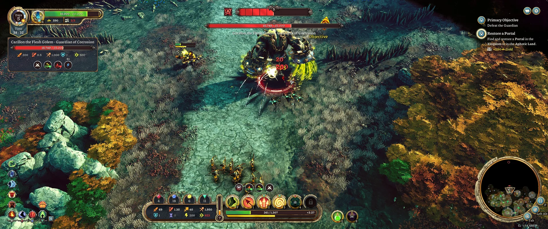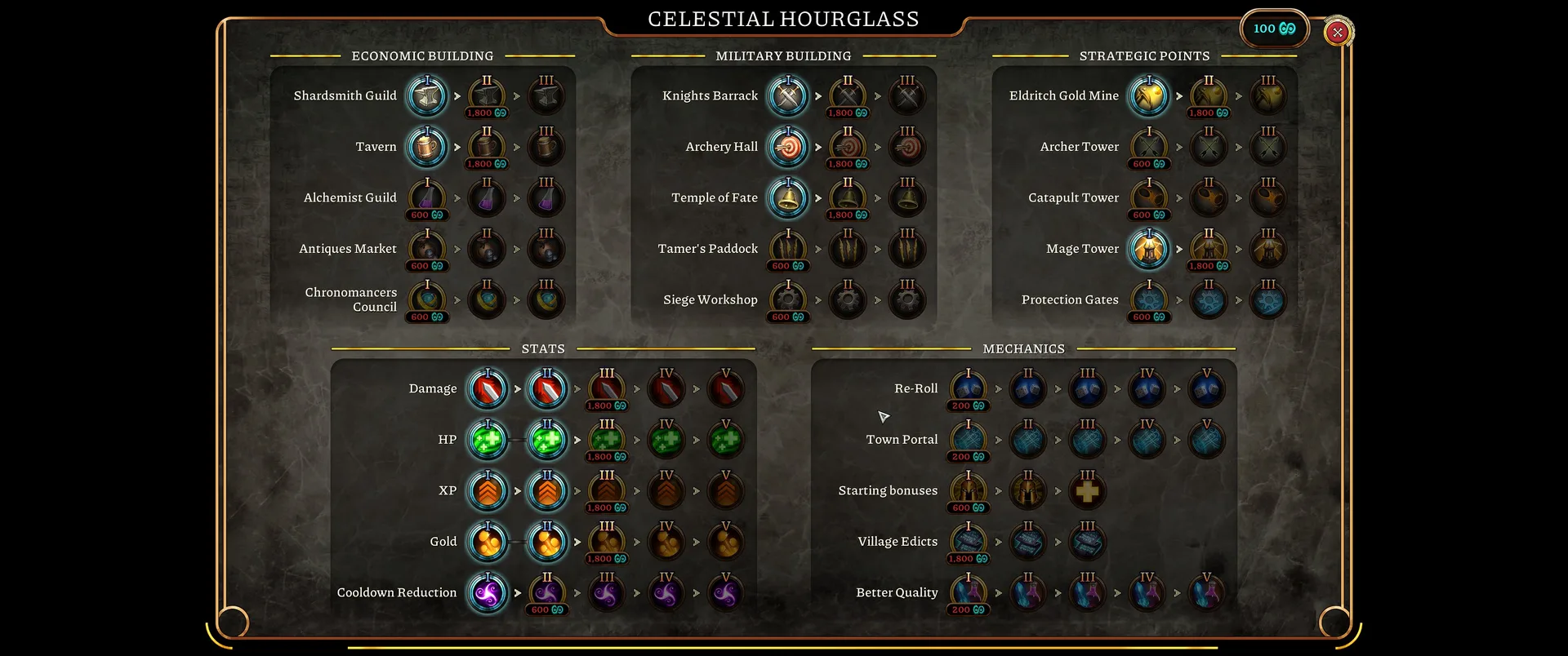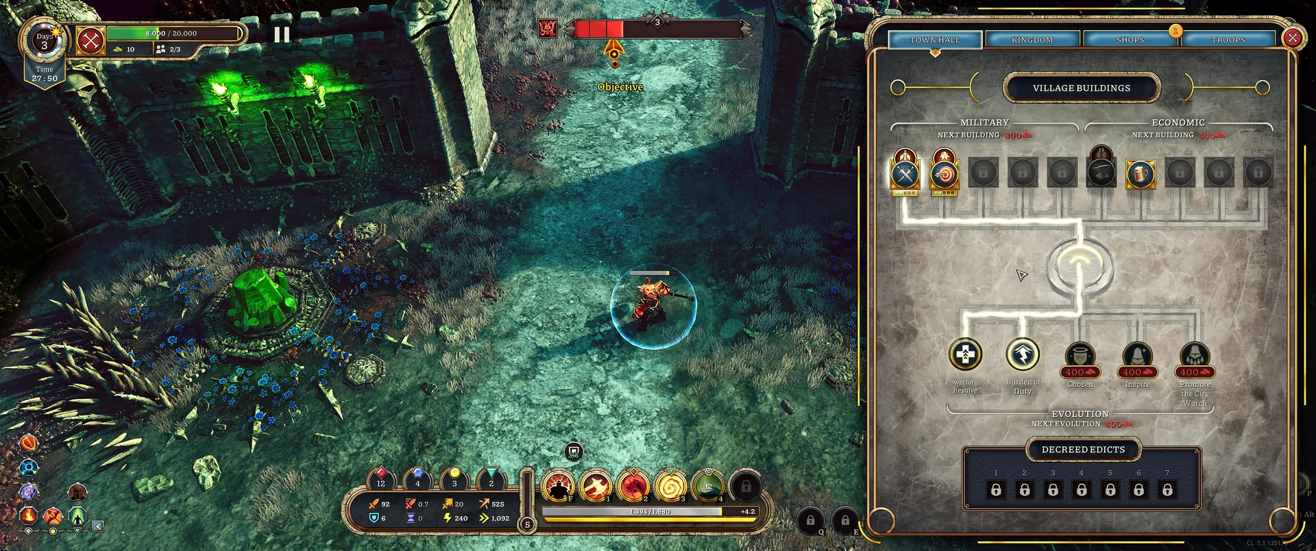 Obrana není jen o vašem hrdinovi. V rámci opevňování Bastionu musíte strategicky stavět různé typy budov, které se dělí na vojenské a ekonomické. Zatímco kasárny rytířů vám umožní rekrutovat těžkooděnce a Ancient Market odemyká přístup k lučištníkům, nesmíte zapomínat na hospodářství. Zlaté doly jsou nezbytným zdrojem příjmů, kterému sekunduje Hospoda, generující zlato i v noci. Správné vyvážení investic mezi armádu, která drží linii, a ekonomické budovy, které vám dovolí přežít v pozdějších dnech průchodu, je v singleplayeru kritickým bodem celé hratelnosti.