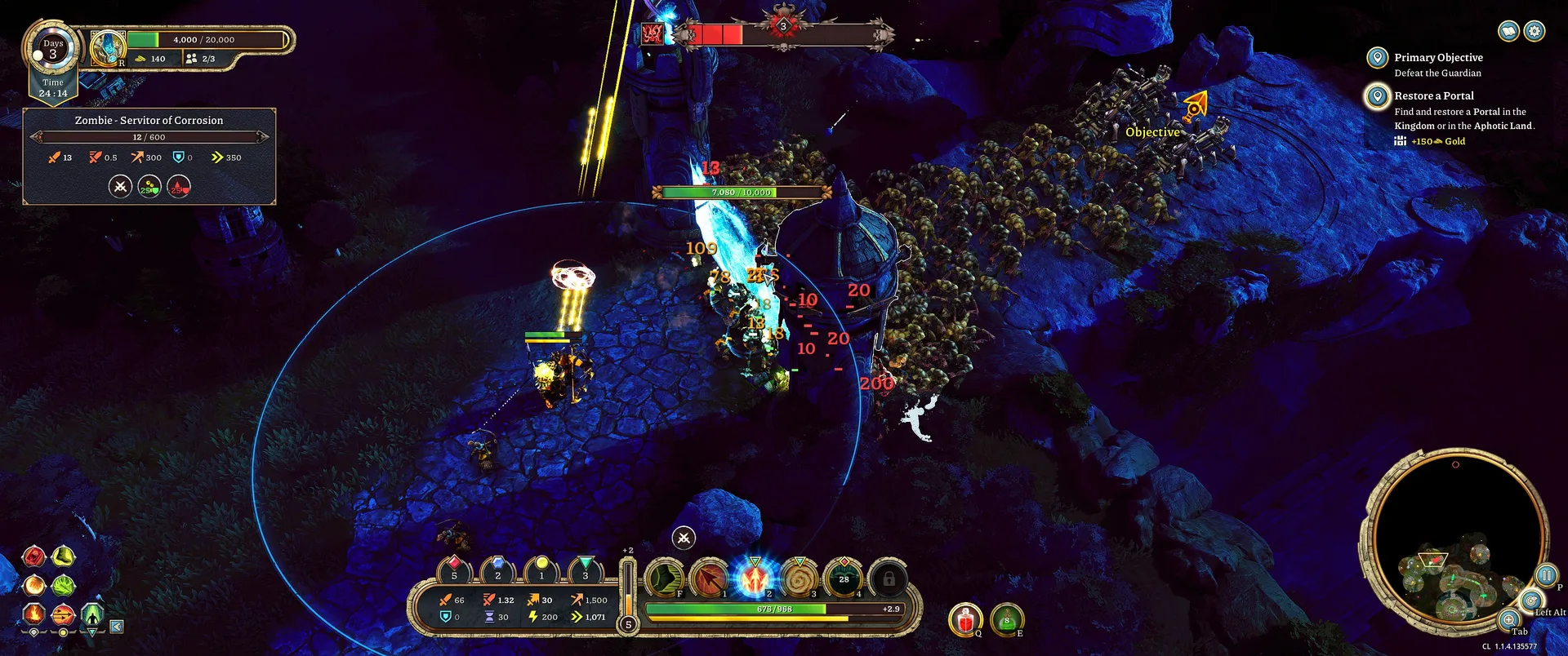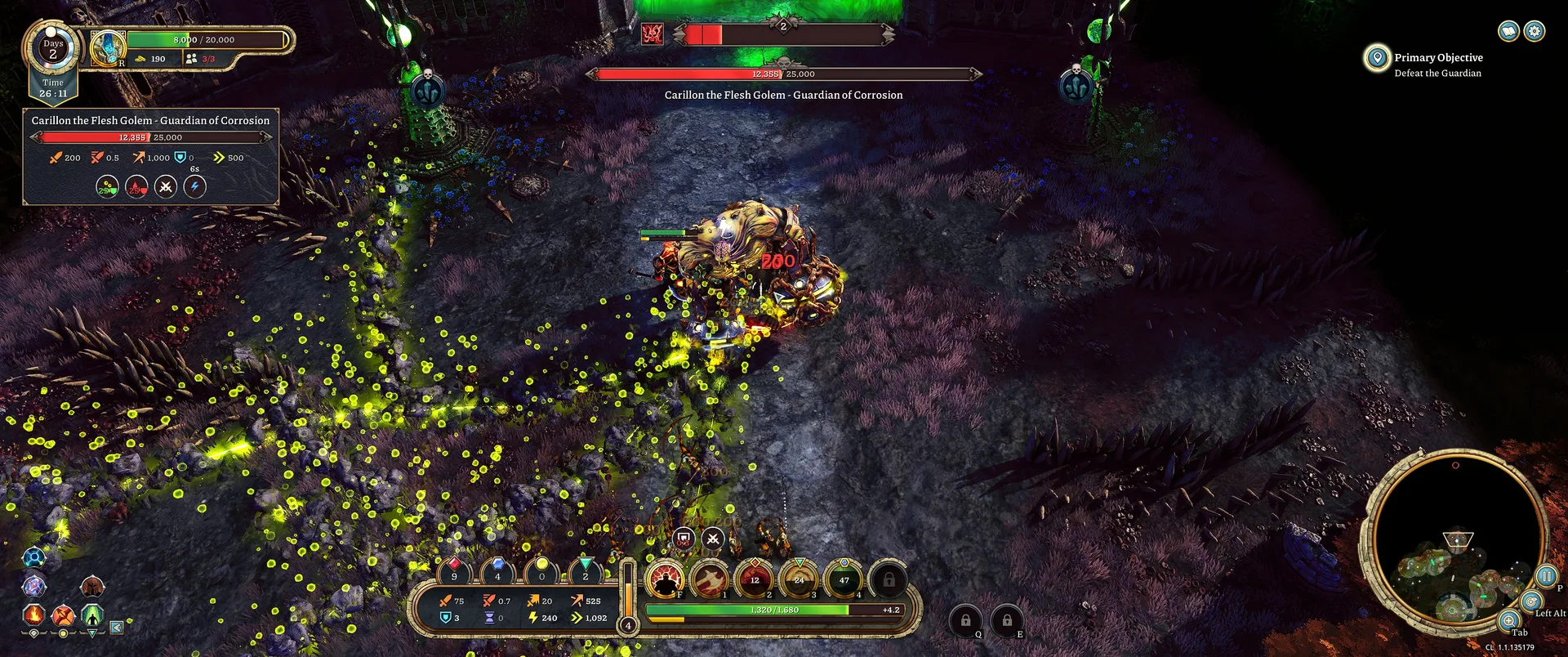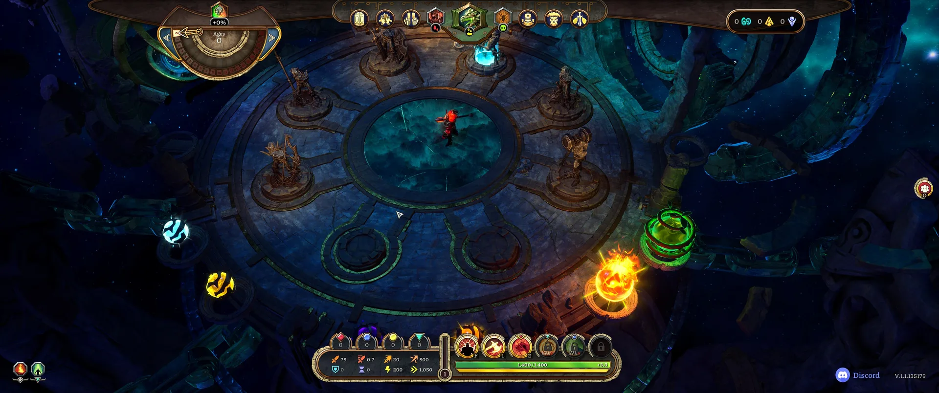 Den v EverSiege není jen o čekání na noc. Mapa je procedurálně generovaná a vybízí k odvážným výletům mimo bezpečí hradeb. Po mapě jsou rozesety úlomky dovedností pro vylepšování schopností, vzácné rostliny pro alchymii nebo truhly se zlatem, které mohou výrazně urychlit váš build. Narazit můžete i na vedlejší úkoly od NPC postav – například aktivace starověkých pylonů může oslabit nepřátelskou hordu. Když už si myslíte, že máte obranu pevně v rukou, hra proti vám postaví bossy. Tito obři nejsou jen silnější verzí běžných nepřátel, ale vyžadují naprosté soustředění a využití terénu i specifických schopností vašeho hrdiny. Právě tyto momenty testují, zda jste během dne nasbírali dostatek vylepšení. Celý postup je navíc rozdělen do několika epoch. Každý věk přináší nové výzvy, silnější typy nepřátel, ale také pokročilejší technologie a možnosti pro váš Bastion. Přechod mezi věky je plynulý a dává hře jasný řád a pocit neustálého růstu.