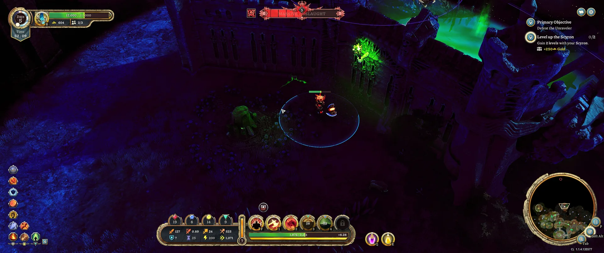 Základní hratelnost v mnohém evokuje zlatou éru uživatelských modifikací ve Warcraftu III. Ten povědomý pocit, kdy za hradbami narůstá temnota a my máme jen omezený čas na přípravu, je zde dotažen k moderní dokonalosti. Premisa je zdánlivě jednoduchá, bráníte centrální budovu proti nekonečným a stále agresivnějším vlnám nepřátel. Jenže zde veškerá nostalgie končí. Hra nás totiž nestaví do role vševidoucího generála, ale hází nás přímo do vřavy v kůži hrdiny Scyrona vybaveného mocným brněním Wargear. V singleplayeru tato dynamika zcela mění svou tvář. Odpadá luxus rozdělení rolí a my se musíme během vteřiny přepínat mezi rolí elitního bojovníka v první linii, prozíravého architekta a ekonoma, který počítá každou utracenou minci.