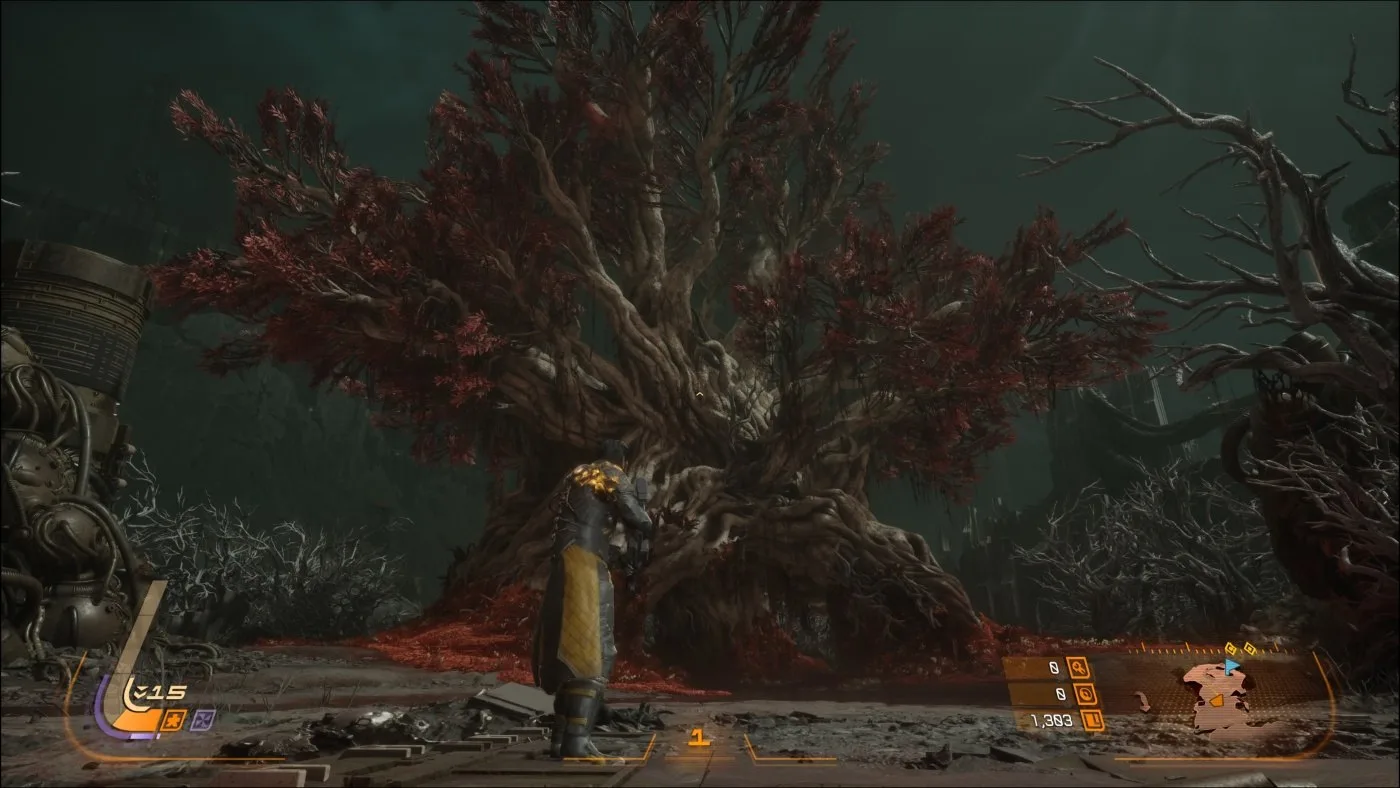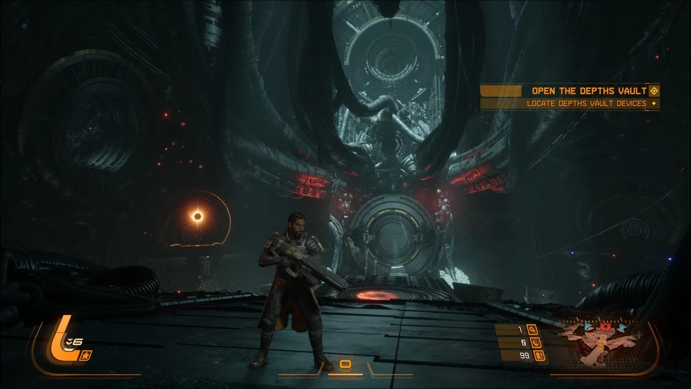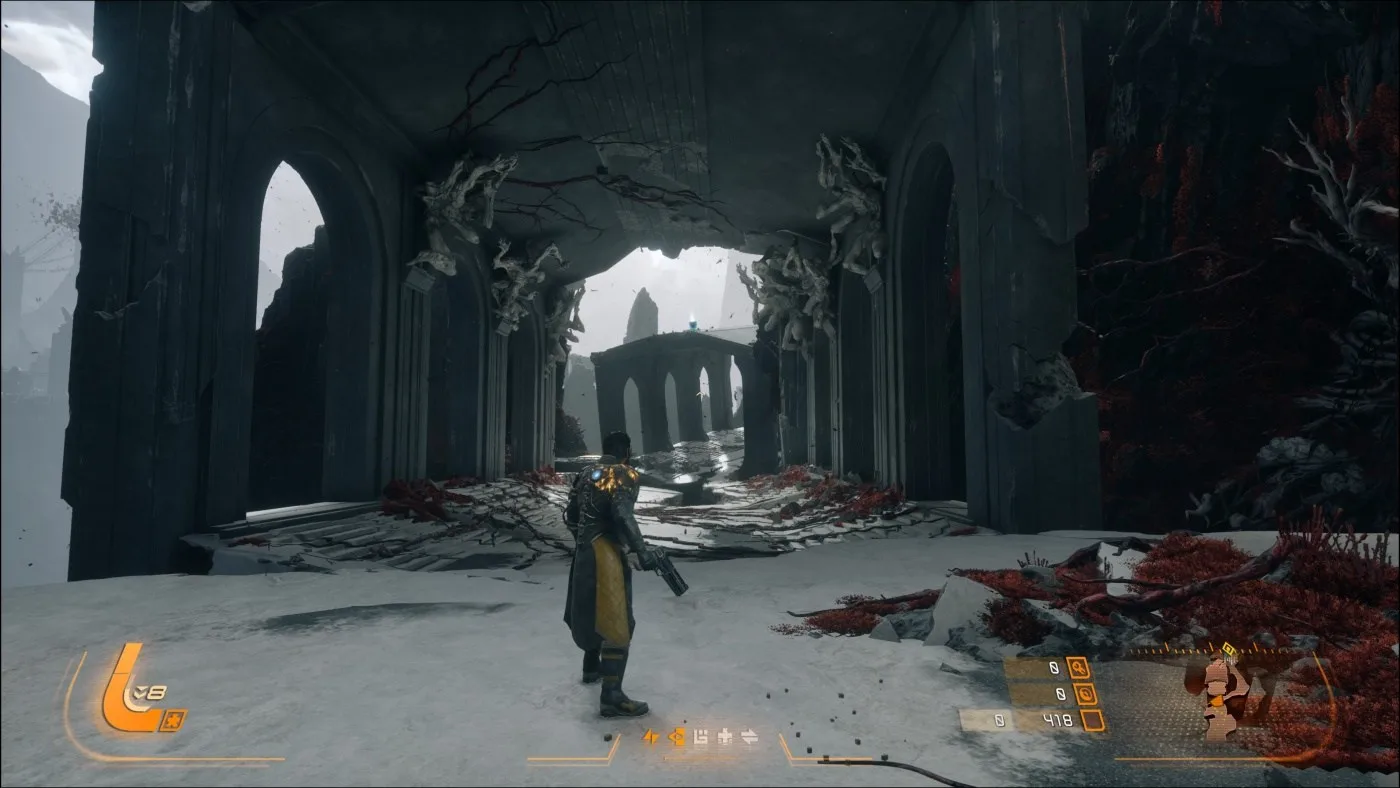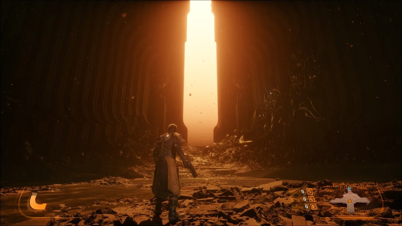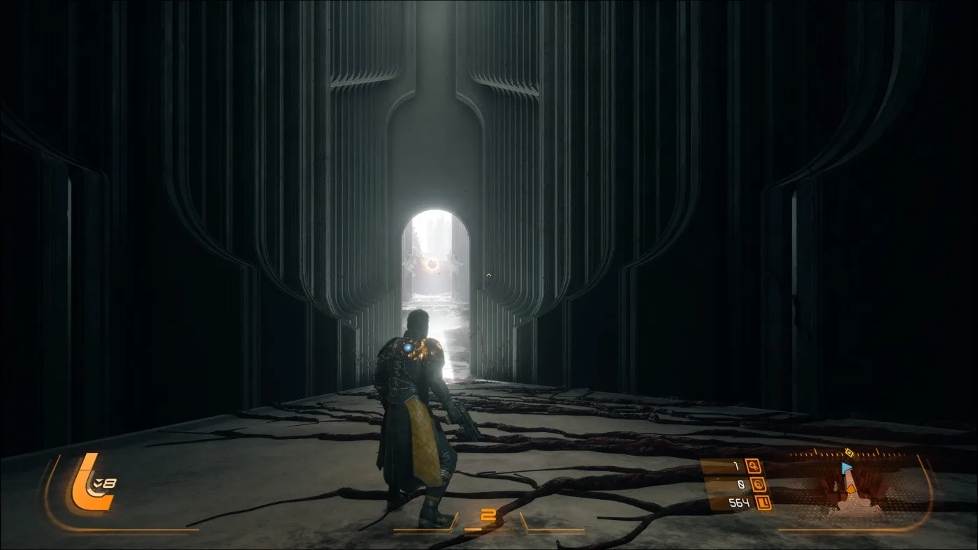 Tento systém zásadne mení tempo hry. Kým Returnal bol nepretržitý tlak bez oddychu, Saros dáva hráčovi priestor na reset a strategické rozhodnutia. Passage zároveň slúži ako naratívne centrum, kde sa odvíjajú dialógy a príbehové momenty. Výsledkom je oveľa lepší balans medzi akciou a príbehom. Hra už nie je len o prežití jedného dlhého runu, ale o postupnom budovaní a odhaľovaní postavy aj sveta.