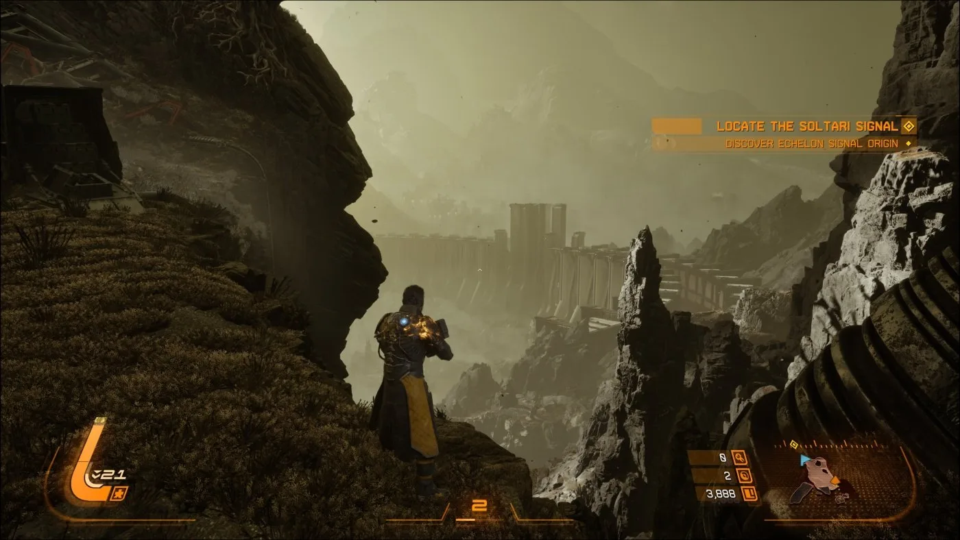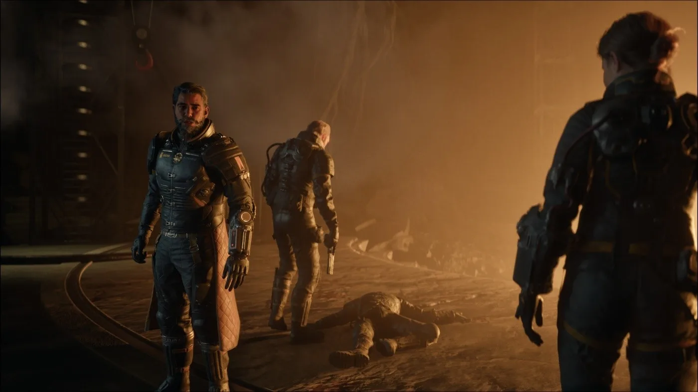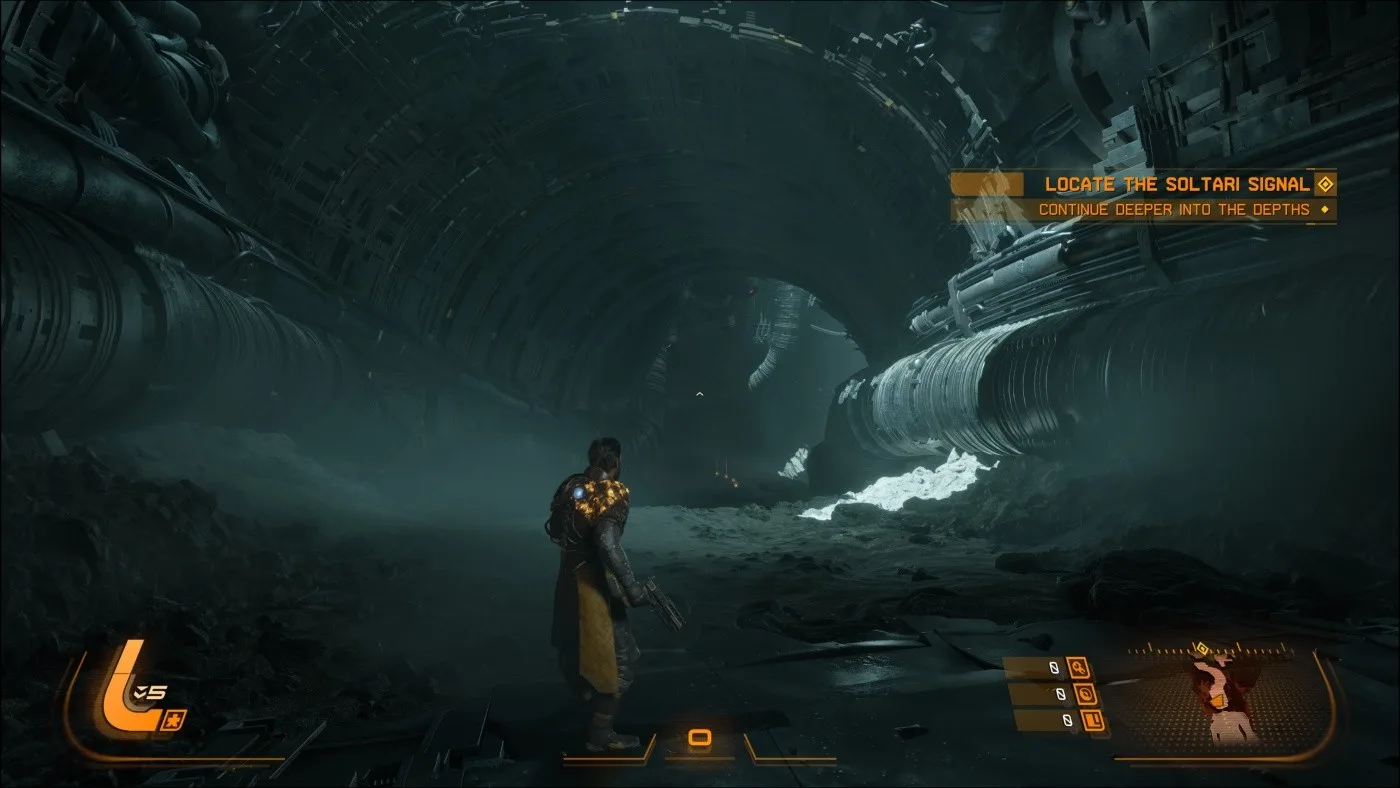 Postupne sa však odhaľuje širší kontext. Kolonizačný program Echelon bol na planétu vyslaný korporáciou Soltari kvôli vzácnej surovine Lucenite, ktorá má obrovský energetický potenciál. Soltari pritom pôsobí ako typická bezohľadná megakorporácia, pre ktorú má ťažba prednosť pred ľudskými životmi, čo vedie k napätiu medzi členmi posádky. Arjun sa navyše neocitol na Carcose náhodou, na jednej z lodí bola osoba, ktorú pozná, a práve jej hľadanie je jeho hlavným hnacím motorom. Aj keď ide na prvý pohľad o známy motív, hra ho dokáže rozvinúť do prekvapivo temnej a komplexnej roviny, pričom Arjunov charakterový vývoj patrí k najsilnejším stránkam celého zážitku.