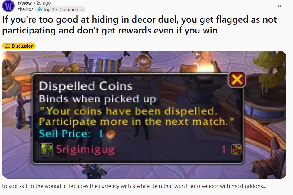 Jedním z viditelnějších problémů je nový prop hunt režim Decor Duel, který podle reakcí nefunguje tak, jak by měl. Někteří hráči mohou využívat schopnosti nebo předměty, které jim usnadňují odhalení ostatních, a navíc se objevuje i zvláštní chyba, kvůli které mohou být hráči označeni jako neaktivní a nedostanou odměnu, i když ve skutečnosti jen správně zůstali schovaní a kolo vyhráli.